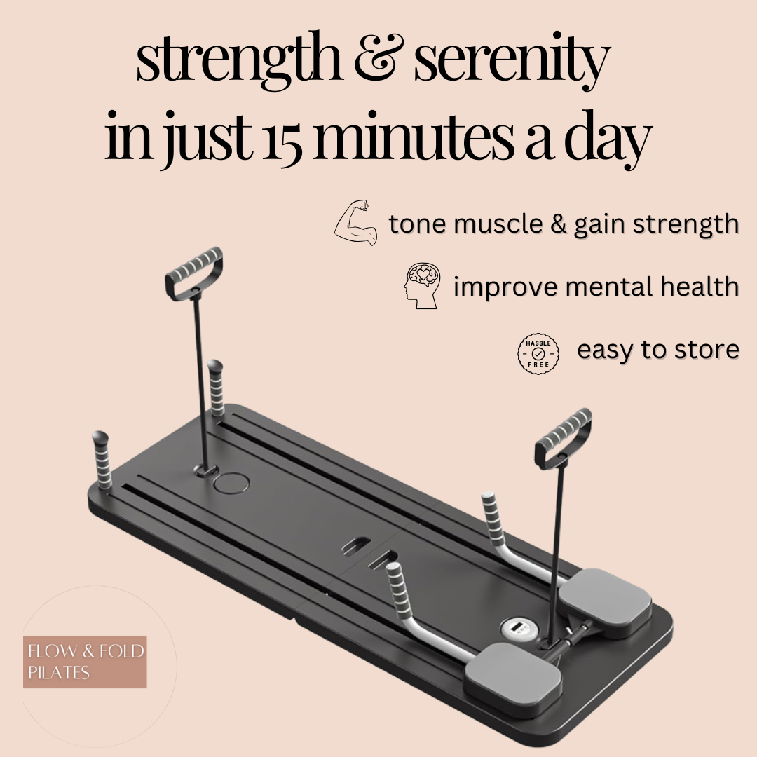 The Deluxe Foldable Pilates Reformer brings professional-grade training into your home. The Deluxe Foldable Pilates Reformer includes resistance bands, alternate handles, and a knee pad for added comfort and increased impact.